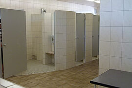 • am Sanitärgebäude (nur Müll, der im Campingbereich angefallen ist)