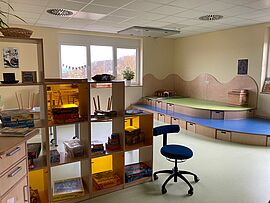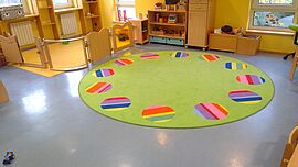 In unserer Kindertagesstätte am Marienplatz werden in zwei Krippengruppen – der Wolken- und der Sonnengruppe – Kinder von 1 – 2,5 Jahren betreut (mit einer max. Gruppenstärke von 12 Kindern). Weiterhin betreuen unsere beiden Regelgruppen – die Regenbogen- und die Sternschnuppengruppe – Kinder von 2,5 – 4 Jahren. Die Gruppenstärke beträgt hier 25 Kinder. Wir betreuen die Kinder in ihren festen Gruppen. Am Nachmittag, sowie im Früh- und Spätdienst auch gruppenübergreifend. Die Gruppenräume sind altersentsprechend und auf die jeweiligen Bedürfnisse der Kinder eingerichtet und in verschiedene Spielbereiche unterteilt und werden durch unseren großen Außenspielbereich im Garten ergänzt.